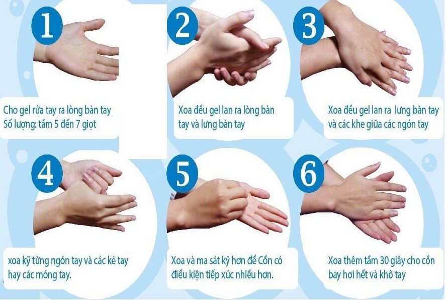 Lưu ý: Để hiệu quả tối đa, mỗi một động tác chà tay phía trên cần phải thực hiện ít nhất năm lần.