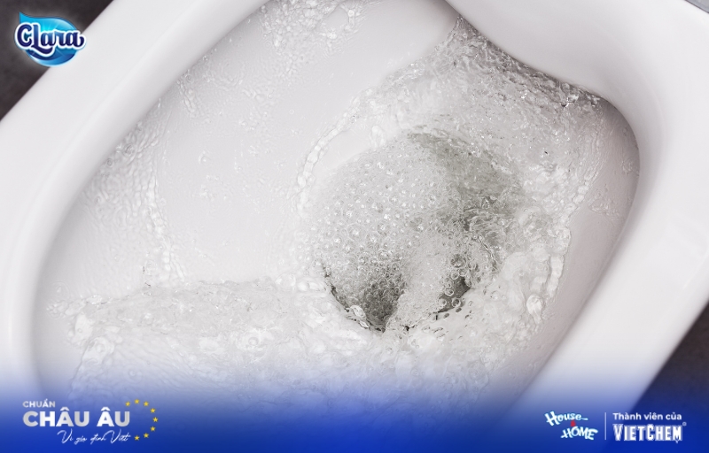 - Sử dụng tẩy bồn cầu và nhà tắm Clara: Sản phẩm này không chỉ làm sạch các vết bẩn, diệt khuẩn mà còn giúp loại bỏ các mảng bám, trả lại vẻ sáng bóng cho bồn cầu.
