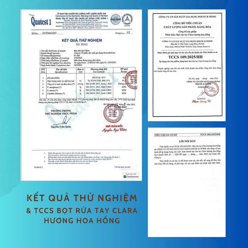 Bọt rửa tay Clara hương hoa hồng đạt TCCS 109:2025/HH