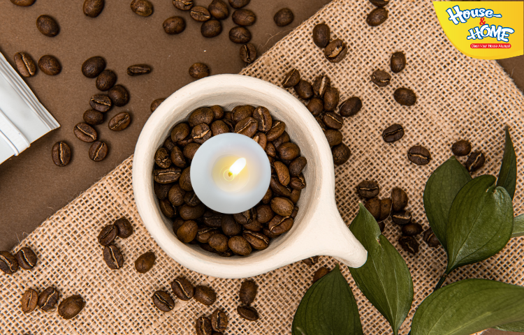 Cách làm rất đơn giản, bạn chỉ cần có một lọ hoặc bát đựng hạt cà phê và đặt một cây nến vào bên trong rồi để ở góc phòng.