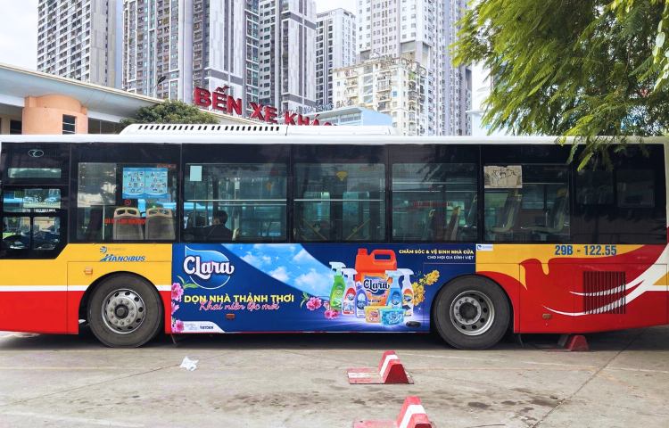 Decal bộ sản phẩm Clara đã có mặt tại xe tuyến 04 - Hà Nội