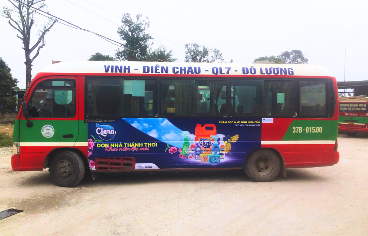 Decal bộ sản phẩm Clara đã có mặt tại xe tuyến Nghệ An