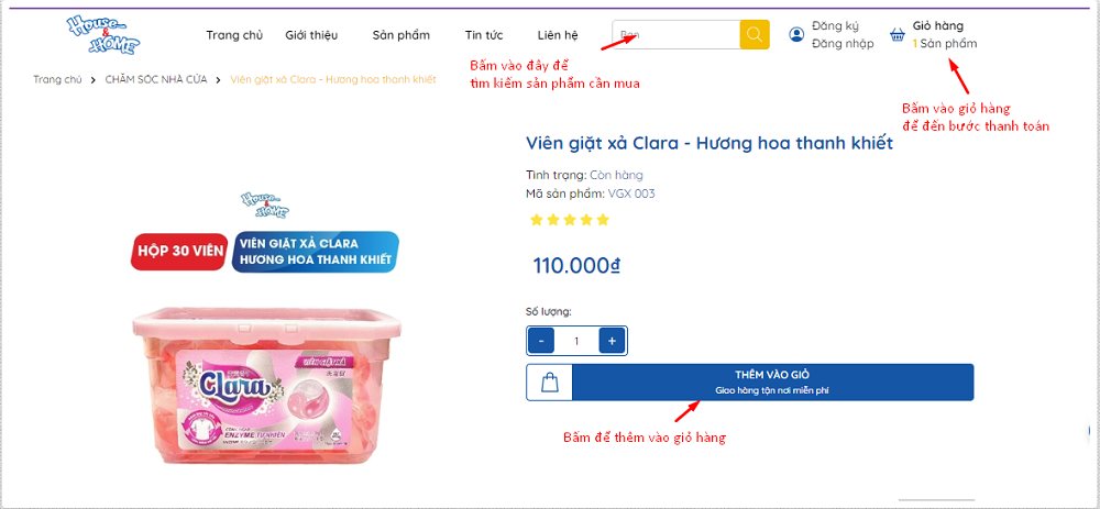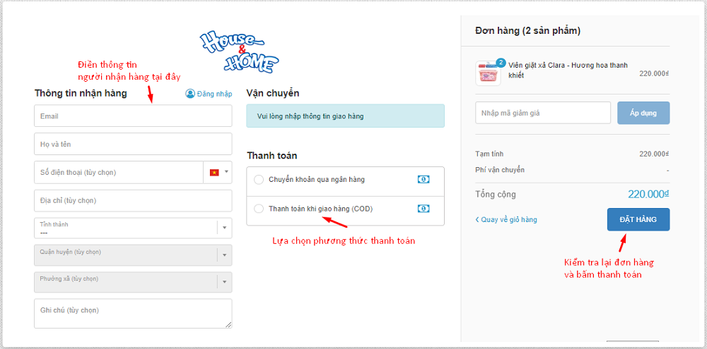 Để mua hàng tại website House&HOME, bạn hãy tiến hành theo các bước sau: