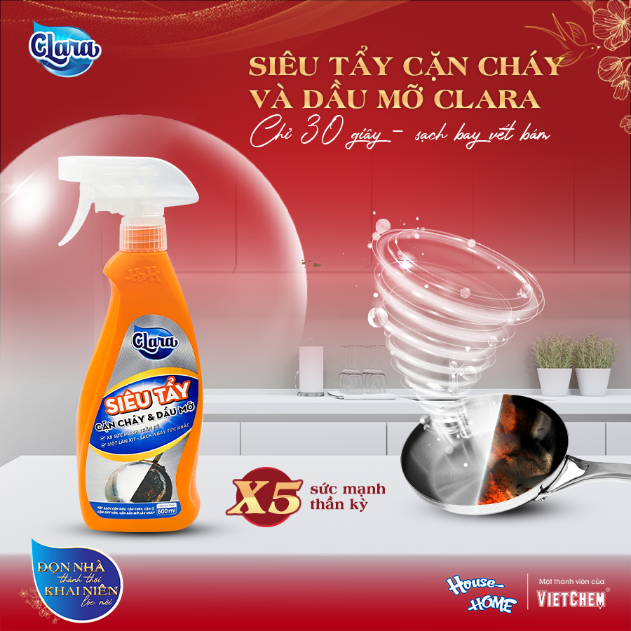 Các nàng đã từng “nếm mùi” còng lưng chùi chảo nhưng không có cách nào cọ sạch những vết ố đen cứng đầu bám dính trên bề mặt xoong chảo hay chưa? Đặc biệt là khi Tết Nguyên Đán sắp cận kề, việc dọn dẹp gấp rút hơn bao giờ hết, mọi thứ trong nhà đều phải sạch sẽ, trang hoàng thì việc tẩy các vết cặn cháy trên xoong chảo giống như là cơn ác mộng của các chị em nội trợ. Nhưng giờ đây, chuyện này sẽ hóa nhỏ vì đã có Siêu tẩy cặn cháy & dầu mỡ Clara đến từ nhà House&HOME.