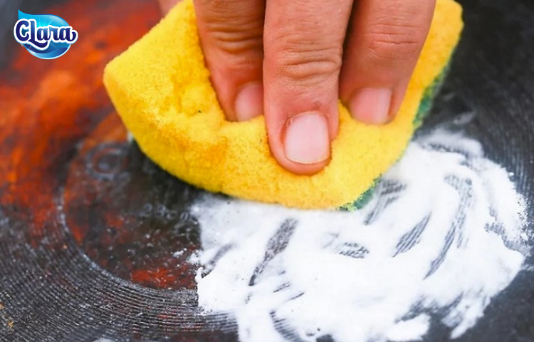 Làm sạch đế chảo bằng baking soda