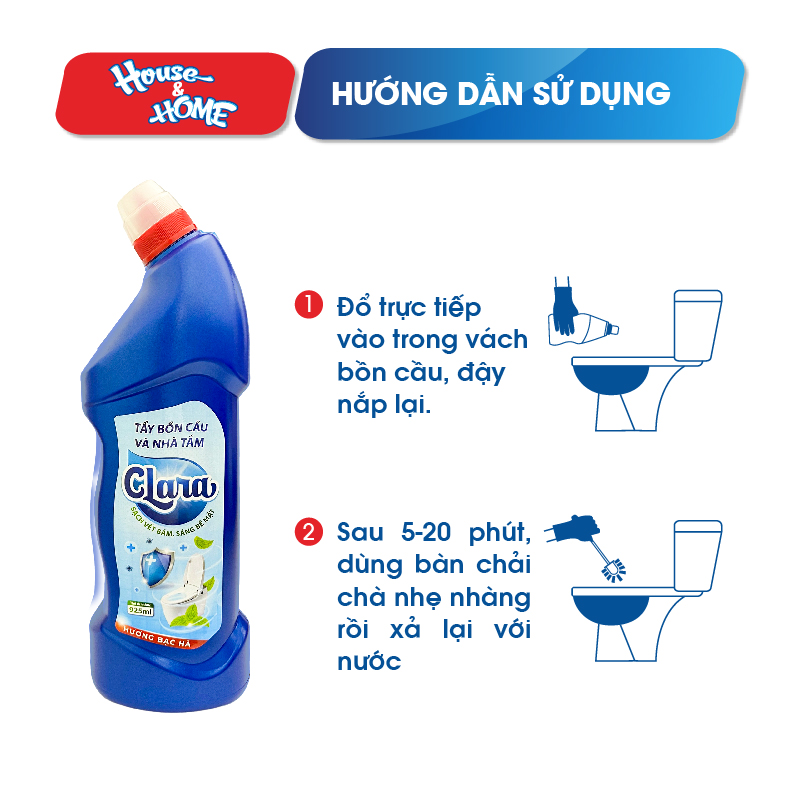 Các bước sử dụng tẩy bồn cầu và nhà tắm Clara