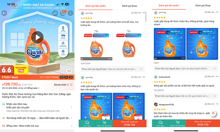 - Bạn Minh Trang (sinh viên) nói: "Một can nước giặt xả 2 trong 1 CLARA dùng được rất lâu vì đậm đặc, ít tốn. Mùi hương dễ chịu mà không quá nồng như nhiều loại khác"
