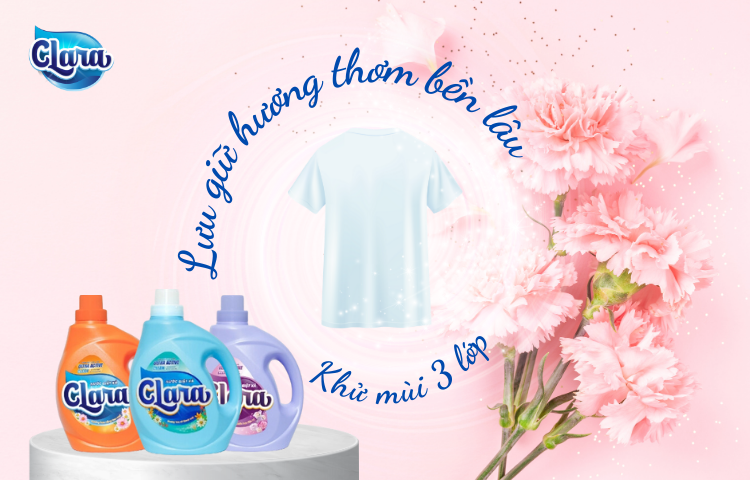 Với công nghệ cải tiến khử mùi 3 tầng và lưu hương tinh tế, nước giặt xả Clara đem lại trải nghiệm giặt sạch, thơm lâu, loại bỏ mùi hôi qua từng thớ vải: