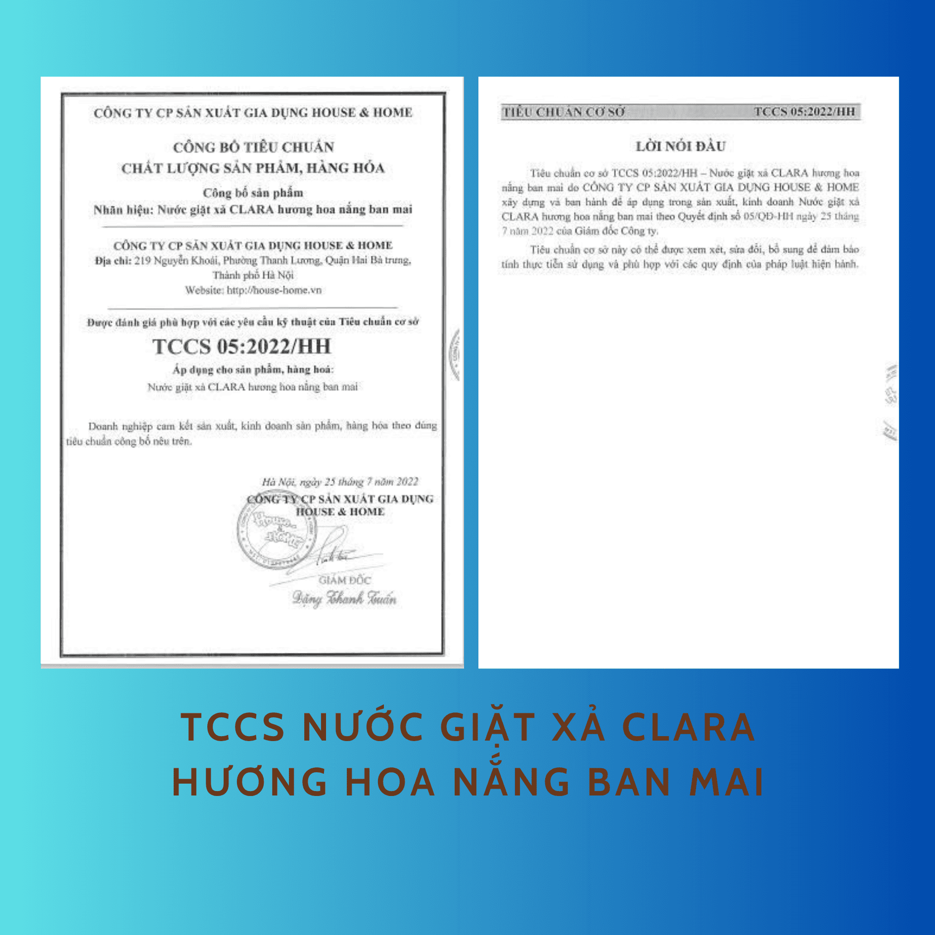 Nước giặt xả Clara hương hoa nắng ban mai đáp ứng TCCS 05:2022/HH