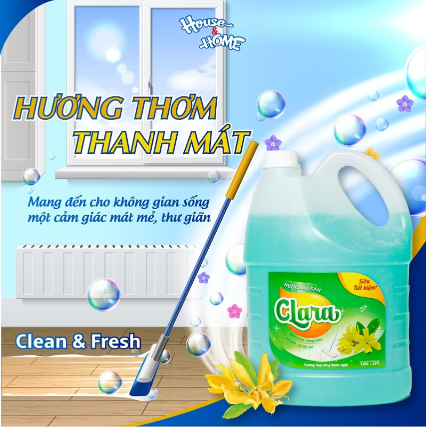 Đừng để không gian rộng của bạn chìm trong sự nhạt nhòa. Hãy để Nước lau sàn Clara hương hoa rừng thổi bừng sức sống núi rừng vào từng góc nhà – sạch tinh tươm, thơm nồng quyến rũ, lan tỏa hơi thở thiên nhiên trong từng bước chân.