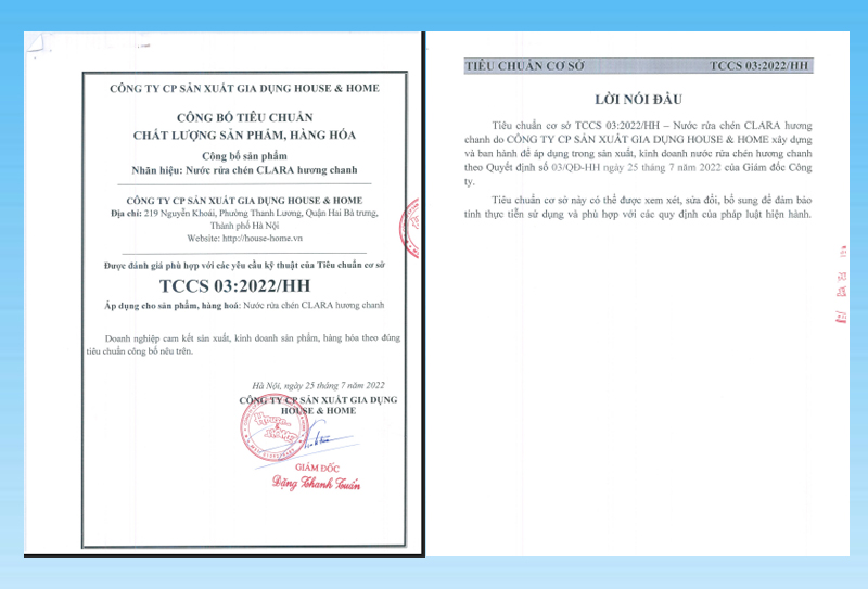 Nước rửa chén hương chanh áp dụng theo TCCS 102:2025/HH
