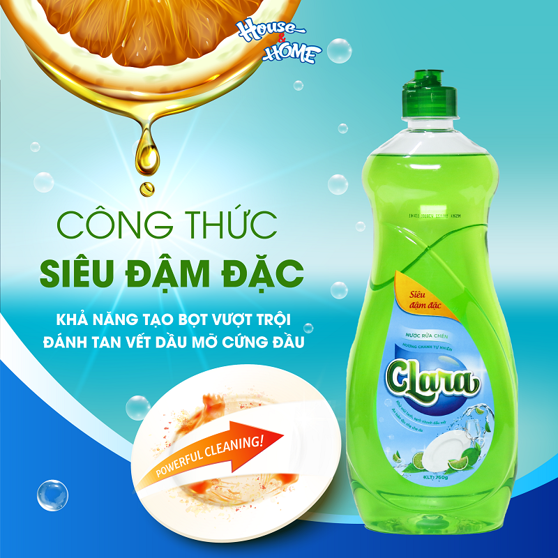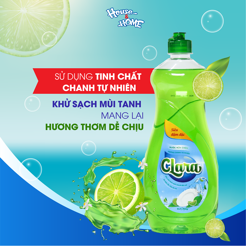 Đặc biệt, hương chanh của Clara sẽ không lưu lại trên chén bát sau khi rửa sạch. Điều này đảm bảo hương vị món ăn được giữ nguyên và an toàn tuyệt đối cho sức khỏe. Hơn nữa, công thức diệt khuẩn chuyên sâu sẽ giúp ngăn ngừa vi khuẩn tích tụ, mang lại sự vệ sinh tối đa, giúp người nội trợ có thể tự tin chuẩn bị từng bữa ăn ngon cho gia đình mà không cần lo lắng.