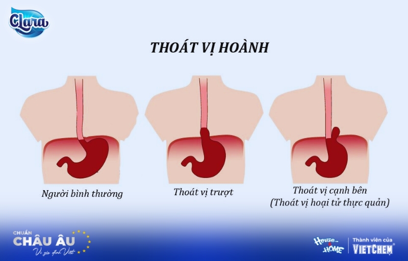 - Thoát vị hoành: Tình trạng một phần dạ dày chui qua khe hở của cơ hoành vào lồng ngực có thể gây khó khăn trong tiêu hóa và dẫn đến ợ hơi.