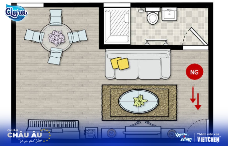 Điều kỵ 1: Cửa nhà vệ sinh đối diện cửa chính