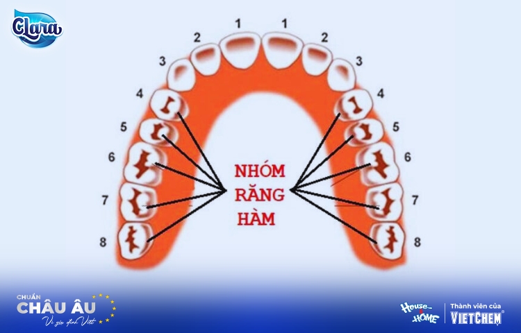 Răng hàm vĩnh viễn (răng cối lớn): KHÔNG thay. Có 3 nhóm răng hàm vĩnh viễn: