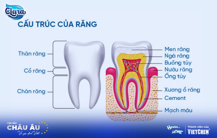 Khi nhìn vào sơ đồ răng người, chúng ta không chỉ thấy vị trí mà còn cả cấu tạo giải phẫu răng chi tiết: thân răng (phần nhìn thấy), cổ răng (nơi tiếp giáp với nướu) và chân răng (nằm trong xương hàm). Mỗi mặt của răng (mặt nhai, mặt ngoài, mặt trong, mặt gần, mặt xa) đều có ý nghĩa riêng trong chẩn đoán và điều trị.
