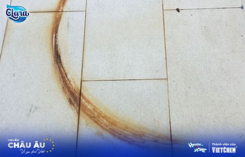 Vết ố rỉ sét trên nền gach do đồ dùng kim loại để lại