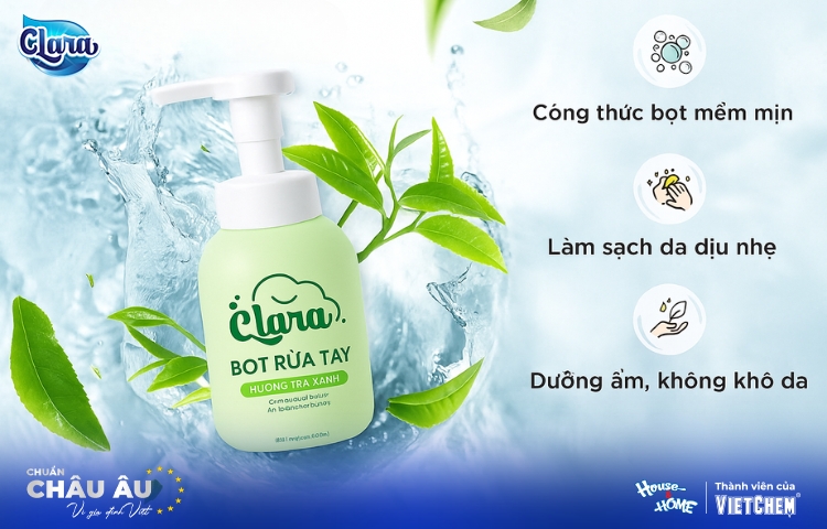 Một trong những sản phẩm rửa tay chuyên dụng nổi bật của năm nay phải kể đến là Bọt rửa tay Clara. Sản phẩm có công nghệ tạo bọt siêu mịn giúp bọt dễ dàng len lỏi vào từng kẽ tay, đánh bật bụi bẩn và vi khuẩn. Không cần chà xát mạnh, chỉ vài giây là bạn đã có đôi tay sạch khuẩn, khô thoáng.
