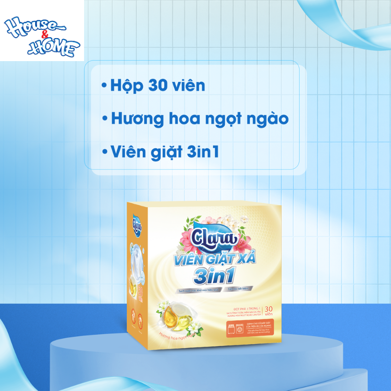 | Tên sản phẩm | Viên giặt xả Clara 3in1 hương hoa ngọt ngào |