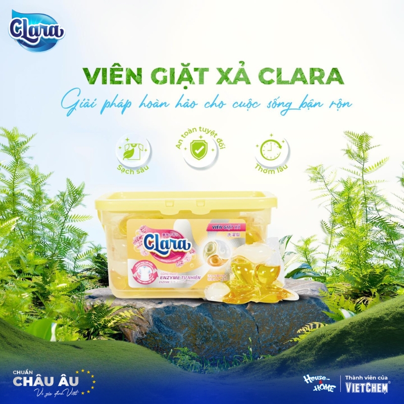 Đồng thời, các thành phần tạo mùi của viên giặt xả Clara 3in1 đều có nguồn gốc an toàn, được áp dụng theo TCCS 36:2023/HH, không sử dụng hương liệu tổng hợp nồng gắt, không chứa chất tạo màu hay phụ gia gây kích ứng. Chính vì thế, CLARA phù hợp cả với những người có làn da nhạy cảm, gia đình có trẻ nhỏ hay những ai đặc biệt khó tính trong việc chọn sản phẩm giặt giũ.