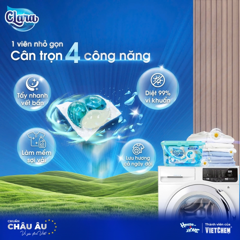 Giặt giũ nhẹ nhàng chỉ bằng một viên giặt xả Clara